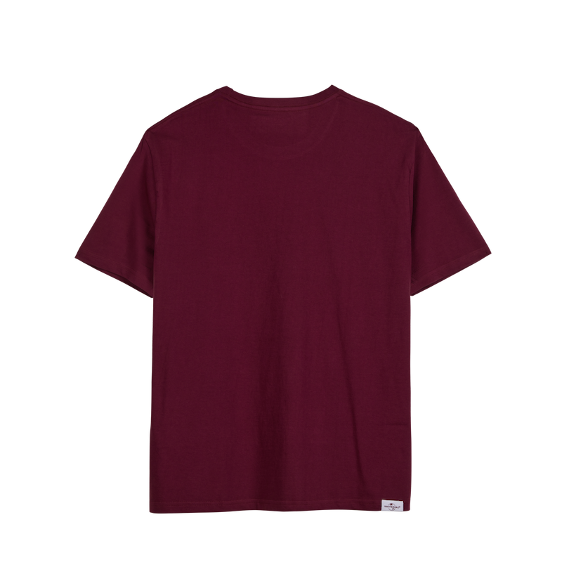 A classic burgundy T-shirt crafted from soft, breathable cotton in a comfortable regular fit. Featuring a clean Universal Production Music logo print at the chest, it delivers a timeless look with subtle, music-inspired branding.